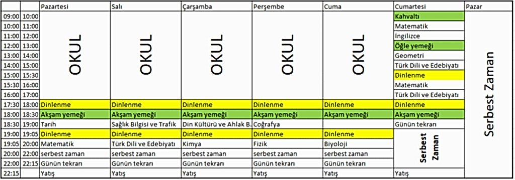 9. sınıf örnek ders çalışma programı örnek olarak verilmiştir. kendinize göre düzenleyerek kullanabilirsiniz.